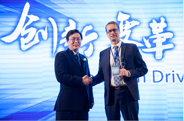 山特維克可樂(lè)滿大中華區(qū)國(guó)際客戶高級(jí)經(jīng)理Mats Nordin上臺(tái)領(lǐng)獎(jiǎng)