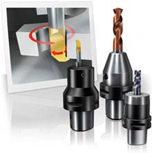 在這里,采用 CoroMill 300 用螺旋插補銑的方式加工較大直徑的孔的是一種安全高效的方法。這種方法產(chǎn)生的切削力遠低于鉆削,而且能克服鉆孔加工中鉆入鉆出工件時由于間斷切削引起的問題。CoroMill 300 能夠以螺旋插補銑的方式加工最小至 32 mm的孔。當然,帶可樂滿 Capto 接口的刀柄和內冷卻設計可為加工帶來更多的益處。