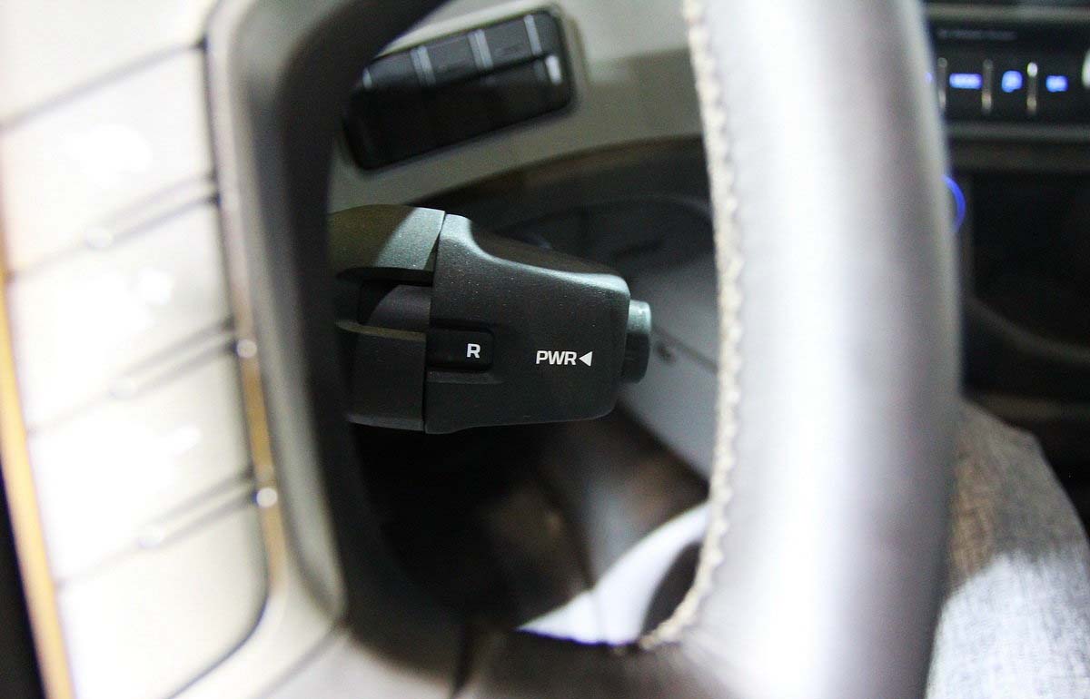 下面讓我們了解創(chuàng)虎ZF AMT變速箱換擋桿的設(shè)置與操作。創(chuàng)虎ZF AMT變速箱換擋桿位于方向盤下方靠右的位置,通過(guò)末端旋鈕的操作可以選擇DM(緩速前進(jìn)擋)、D(前進(jìn))、N(空擋)、R(倒擋)、RM(緩速倒擋)等5種不同的檔位模式,其中還囊括了PWR雙動(dòng)力模式開關(guān)。