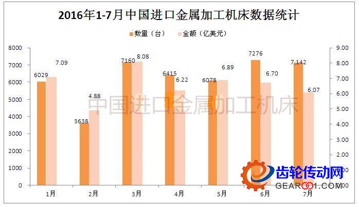 近日,中商產業研究院數據統計顯示在網上,2016年1-7月份中國進口金屬加工機床43754臺,進口金額45.92億美元;與去年同比分別下降了19.4%和11.0%。