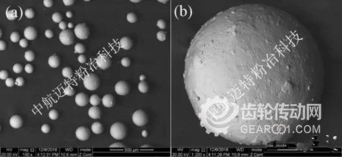△ 電極感應氣霧化制備TiNi合金粉末SEM圖.(a)粉末形貌;(b)單個顆粒粉末形貌