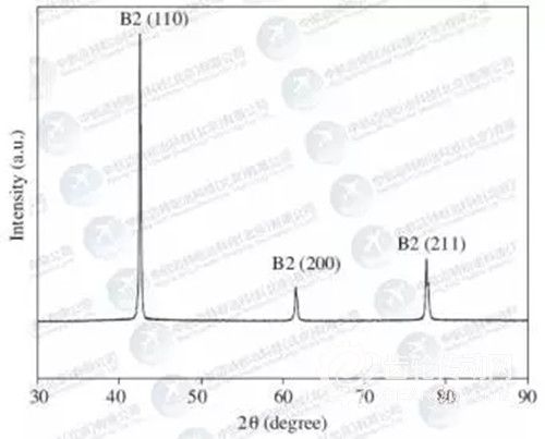下圖為電極感應氣霧化制備球形TiNi合金粉末的X射線衍射圖譜,從圖中可以看出,合金粉末均為TiNi相(B2有序相)。這表明電極感應霧化制備的TiNi合金粉末潔凈度高,并且成分均一。經氣體含量檢測,15-53μmTiNi粉末的氧含量為371ppm,氮含量為35ppm。