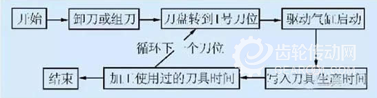 ①在機床卸刀前或組刀后,機床記錄使用的刀具,旋轉刀盤,逐個寫入刀具加工時間;