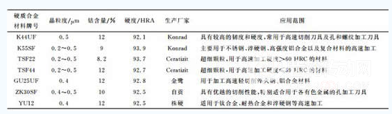 表2 適合高速切削的硬質合金材料