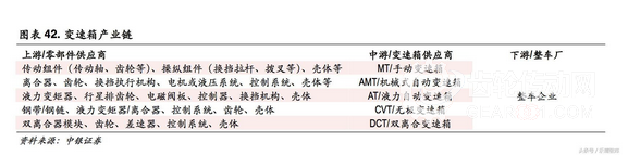 變速箱的產(chǎn)業(yè)鏈主要有上游的齒輪、液力變矩器、差速器等零部件,中游的變速箱供應(yīng)商,下游的整車企業(yè)構(gòu)成。從產(chǎn)業(yè)鏈投資的角度來看,在自動變速箱總成領(lǐng)域,國產(chǎn) DCT 多由整車廠主導(dǎo),而 CVT 及 AT 則有較多獨立的變速 箱企業(yè),有望在這波消費升級的大潮中獲益,如萬里揚、盛瑞傳動等。