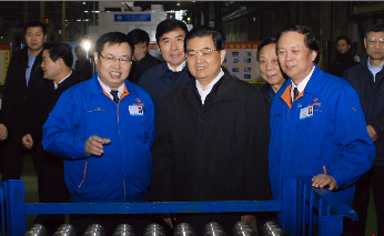 1月25日,古城西安風(fēng)和日麗、三秦大地陽光明媚。當(dāng)天上午,中共中央總書記、國家主席、中央軍委主席胡錦濤蒞臨法士特公司考察調(diào)研企業(yè)自主創(chuàng)新工作。法士特集團公司董事長李大開、黨委書記崔維克代表全體員工對胡錦濤總書記表示熱烈歡迎,并陪同參觀了西安高新廠區(qū)。陪同胡錦濤總書記前來的有中共中央書記處書記、中央辦公廳主任令計劃,中共中央書記處書記、中央政策研究室主任王滬寧,陜西省委常委、省委秘書長魏民洲,陜西省委常委、西安市委書記孫清云、市長陳寶根等領(lǐng)導(dǎo)。