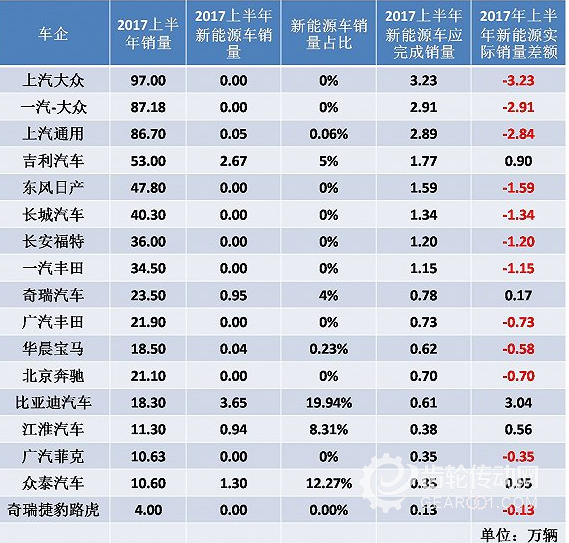 雙積分最根本的目的是在于節能減排,鼓勵新能源汽車發展。也就是說除了在傳統燃油車的燃油經濟性上下功夫外,最關鍵的在于新能源汽車的發展。2018年的車企產銷量尚未得知,但為方便計算,不妨以今年上半年銷量為計算基數,雖說有差異,但整體大方向還是能夠作為參考。