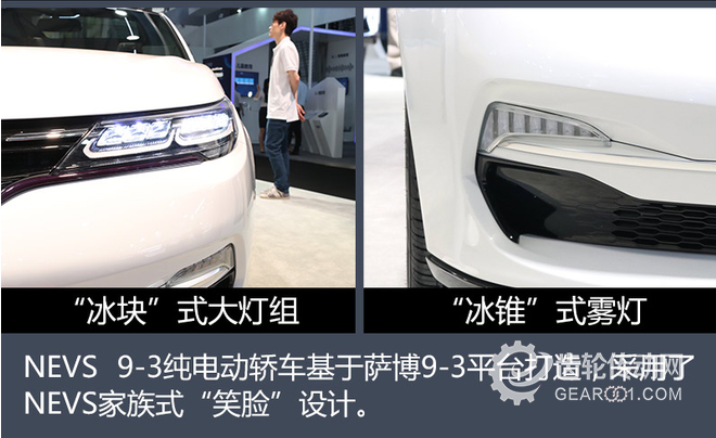 NEVS 9-3X為該品牌旗下純電動SUV車型,新車前臉設計與9-3車型相似,采用同樣的“笑臉”設計,頭燈組采用“冰塊”造型,而與9-3區別的是獨特的“三角冰錐式”設計。