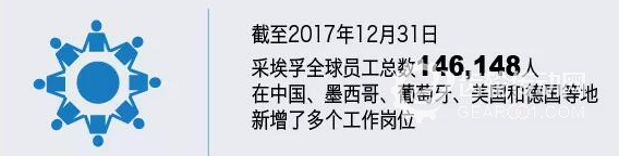 截至2017年12月31日,采埃孚全球員工總數為146,148人(2016年員工總數為136,820人)。新增的工作崗位大多位于中國、墨西哥、葡萄牙、美國以及德國,他們主要在主動及被動安全技術事業部、電驅動事業部、乘用車底盤技術事業部和乘用車傳動技術事業部工作。其中,擔任研發工作的員工在全球范圍內達到了1,700人左右。