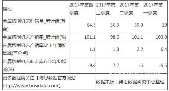據(jù)博思數(shù)據(jù)發(fā)布的《2018-2023年中國(guó)金屬切削機(jī)床市場(chǎng)分析與投資前景研究報(bào)告》表明:2017年我國(guó)金屬切削機(jī)床銷量達(dá)64.3萬(wàn)臺(tái),庫(kù)存累計(jì)下降9.4%。