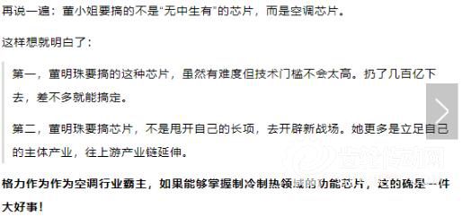 3、空調芯片雖然技術上要求不算太高,但是如果被國外卡了脖子,國內又一時生產不上來,一樣會讓格力萬分難受。