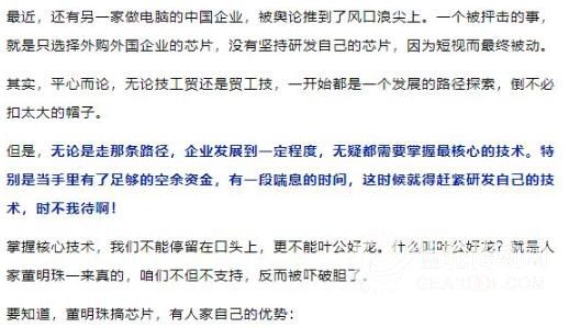 有人還以為董明珠是只懂得芯片ABC,想給人家普及芯片知識。其實,董明珠看過的芯片,不一定比某些看似專業、猛潑冷水的人少。