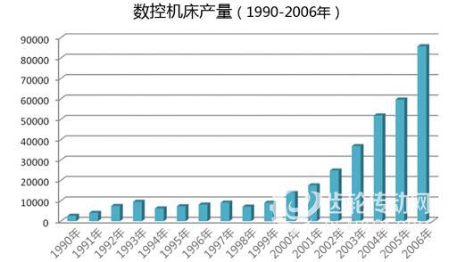 作為機床工具工業(yè)發(fā)展的標志,“十五”(2001-2005年)以來,我國數(shù)控機床產(chǎn)量以30%以上的速度增長。五軸聯(lián)動加工中心和五面體龍門加工中心等快速發(fā)展,進入實用階段,為能源、汽車、航空航天等國家重點建設(shè)工程提供了關(guān)鍵設(shè)備。同時,為數(shù)控機床配套的功能部件、量刃具也得到了加速發(fā)展。單就金切機床而言,2002年全國產(chǎn)量達到23.10萬臺,其中數(shù)控機床24803臺。到2003年,金切機床產(chǎn)量達到30.68萬臺,其中數(shù)控金切機床產(chǎn)量36813臺。