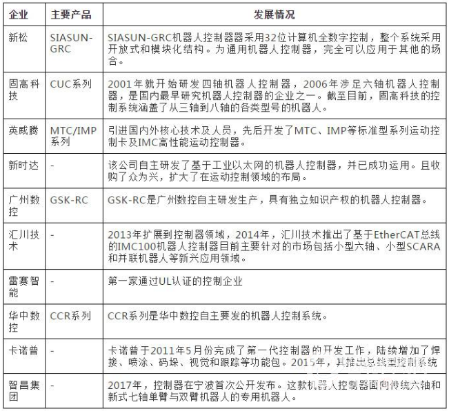 國(guó)產(chǎn)主要控制器企業(yè)一覽表