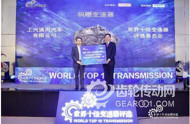 汽車評(píng)價(jià)研究院院長李慶文(右一)代表世界十佳變速器評(píng)選委員會(huì)接受泛亞汽車技術(shù)中心驅(qū)動(dòng)系統(tǒng)部變速箱總工程師汪新云捐贈(zèng)獲獎(jiǎng)變速器