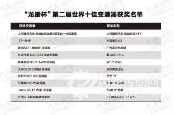 “龍?bào)幢?rdquo;第二屆世界十佳變速器獲獎(jiǎng)名單
