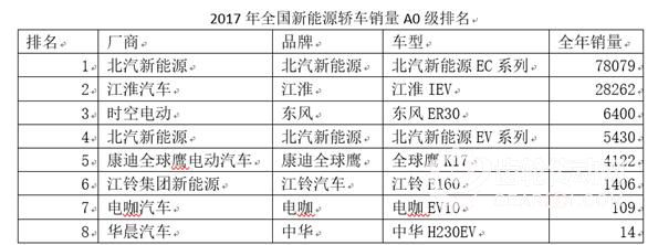 2018年,中國新能源汽車產銷分別完成127萬輛和125.6萬輛,比上年分別增長59.9%和61.7%。在巨大產銷量的背后,一大批A00、A0級車型成為市場銷售的主流產品。不只是2018年如此,這種現象已有很多時間,比如,2017年的銷量中,A0級電動汽車數量非常可觀。