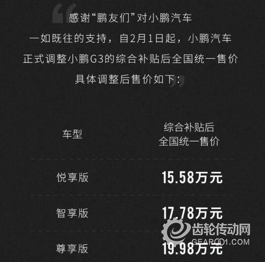 當(dāng)然,除了宣布“不漲價(jià)”的以外,還有宣布“漲價(jià)”的,小鵬汽車就是第一個(gè)。在政策還沒有正式發(fā)布之前,為了應(yīng)對(duì)新能源汽車補(bǔ)貼退坡。造車新勢力小鵬汽車就已經(jīng)宣布了漲價(jià),旗下小鵬G3漲幅在2-3萬左右。