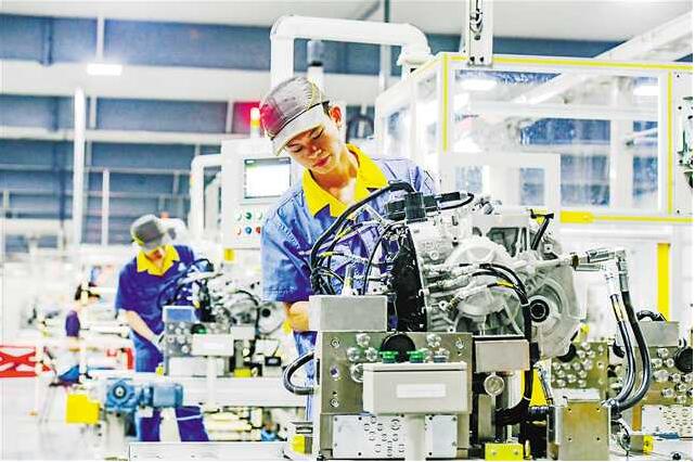 工人在藍黛6AT變速器生產線上忙碌