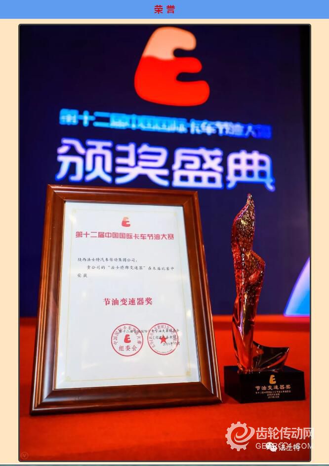 12月23日,“第十二屆中國國際卡車節油大賽”頒獎典禮在北京隆重舉行,法士特再次榮獲“節油變速器獎”。這已是法士特連續12屆摘得中國國際卡車節油大賽獎項,成為齒輪行業唯一獲此殊榮的企業。