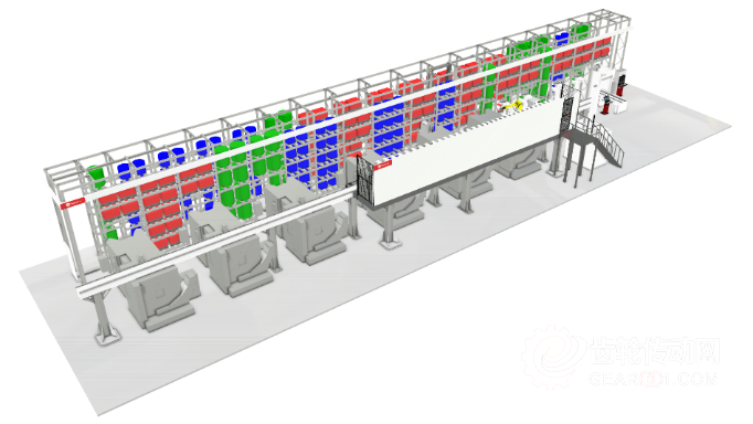 4臺五軸加工中心,同時集成100多個物料托盤和100多個機加托盤。