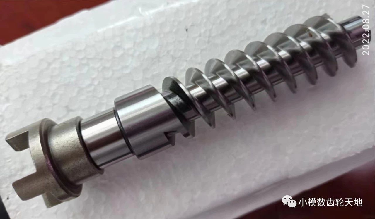 在小模數齒輪傳動中,蝸桿斜齒輪傳動是基于螺旋齒輪傳動原理而出現的一種新型結構,其高傳動比,低噪聲,齒厚配置快速簡便,結構簡單,得到設計和使用單位的歡迎。特別是,金屬漸開線蝸桿配塑料漸開線斜齒輪傳動,已在民生齒輪傳動中得到越來越廣泛應用,但其中的金屬漸開線蝸桿,包括減齒厚金屬漸開線蝸桿的制造,普遍存在精度較差等問題,影響了整體噪聲和傳動效率。