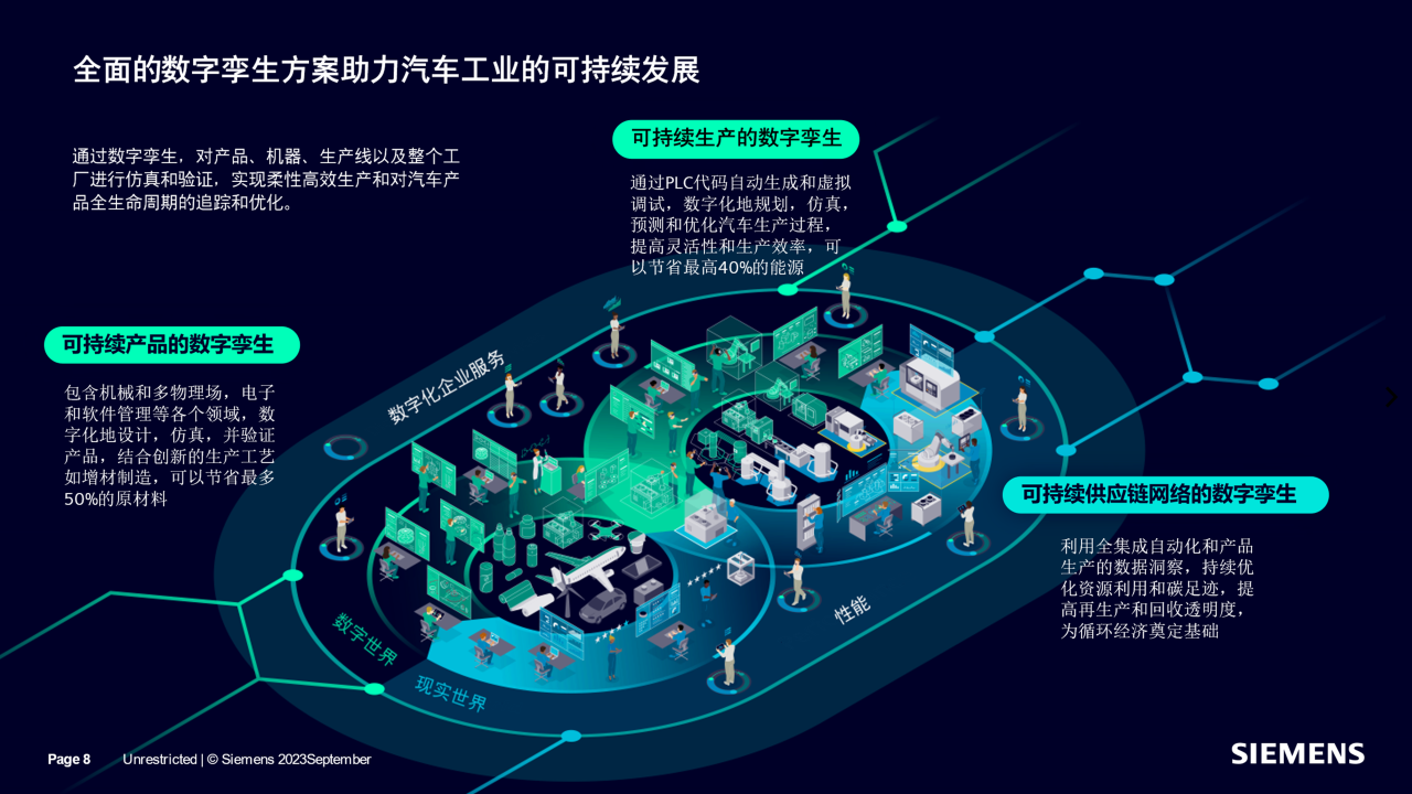 西門子在持續推動數字化、助力企業轉型升級的同時,也在一直強調可持續、強調生態圈。數字化+低碳化的“雙輪”驅動之力,必將為汽車產業鏈、汽車生態圈創造長期價值,為人類開創更美好的未來出行生活。