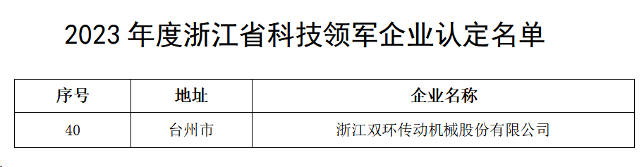 近日,浙江省科技廳發布了《2023年度浙江省科技領軍企業名單》,雙環傳動成功入選“2023年度浙江省科技領軍企業”榜單。