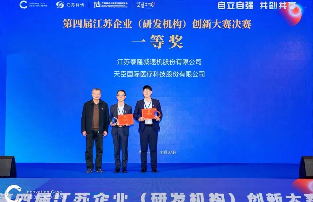 2023年11月23日,江蘇省企業研發機構促進會、江蘇省科學技術情報研究所在蘇州市聯合舉辦第四屆江蘇企業(研發機構)創新大賽決賽,泰隆集團參賽作品“新模式引領,助推智能智造——工業機器人用精密減速器研發歷程”榮獲一等獎。