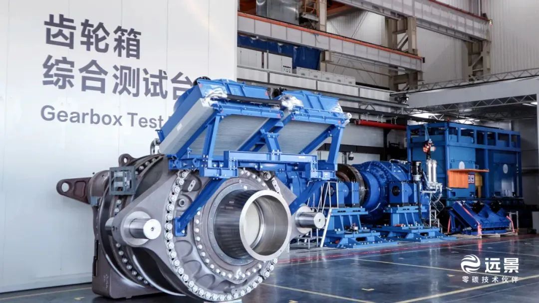 為了驗證部件性能、部件與系統的耦合情況,過去幾年,遠景在測試驗證方面的硬件投資和技術研發投入巨大——遠景是中國最早建成多自由度整機加載測試臺的整機廠家,同時擁有中國最大的具備動態彎矩能力的風電主軸承測試臺和26兆瓦級別中國唯一的彎扭耦合傳動鏈測試臺。常規齒輪箱測試只有純扭矩加載一個模式,遠景國內獨創了傳動鏈彎矩加載、彎扭耦合、沖擊載荷、交變載荷、波動載荷等非常規測試,盡最大可能接近風機實際應用工況。