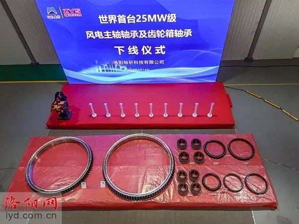 3月14日上午,世界首臺25兆瓦級風電主軸軸承及齒輪箱軸承,在洛陽軸研科技有限公司成功下線。