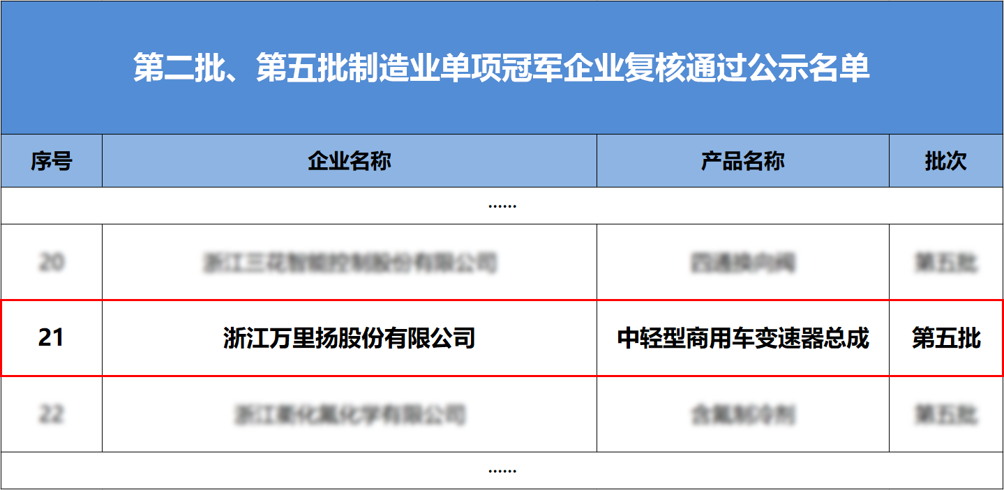 此次通過制造業單項冠軍企業復核認定,標志著萬里揚中輕型商用車變速器總成在國內同行業中繼續保持領先水平,具有較高的市場占有率和較強的技術創新能力,也是對萬里揚行業地位、品牌價值和綜合實力的高度認可。未來,萬里揚將繼續發揮冠軍企業的示范引領作用,深耕細分領域,在智慧星AMT重卡自動變速器、DHT混合動力驅動總成等產品提升競爭力,堅持創新驅動,踐行“軟件定義產品”和“智能制造”雙輪驅動,不斷提升企業核心競爭力,爭創更多個行業單項冠軍,為振興民族汽車工業發展貢獻更多力量。