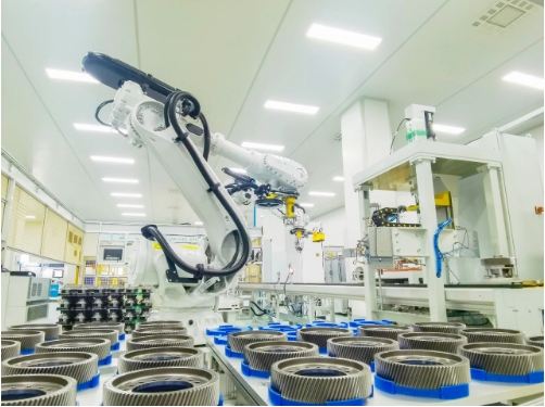 生產(chǎn)線上,機(jī)械臂來回?cái)[動(dòng),將物料投入指定位置;各式機(jī)器隨之啟動(dòng)滾齒、熱處理、磨齒等作業(yè);一個(gè)個(gè)锃亮的精密齒輪完成加工,等待發(fā)往全球各地……日前,記者走進(jìn)位于玉環(huán)市沙門鎮(zhèn)的浙江雙環(huán)傳動(dòng)機(jī)械股份有限公司生產(chǎn)新能源汽車零部件的未來工廠車間,仿若置身科幻電影。