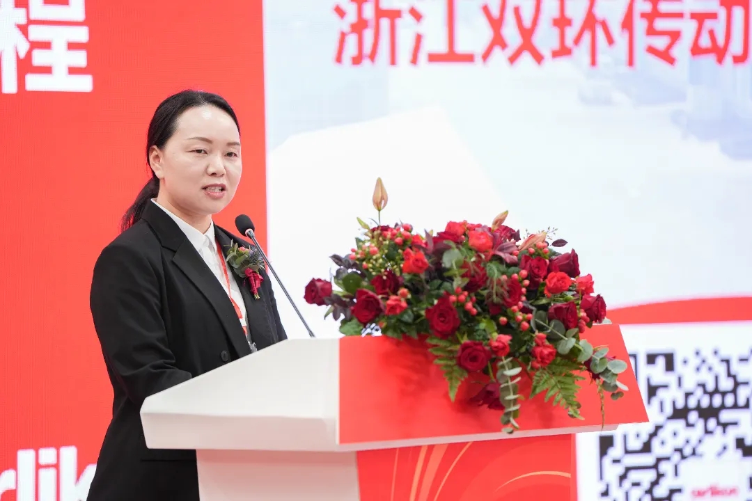 浙江雙環(huán)傳動機(jī)械股份有限公司供應(yīng)鏈管理室采購部長楊瑜發(fā)表致辭,回顧與歐瑞康巴爾查斯間的合作歷程,并希冀合作共贏,友誼長存。