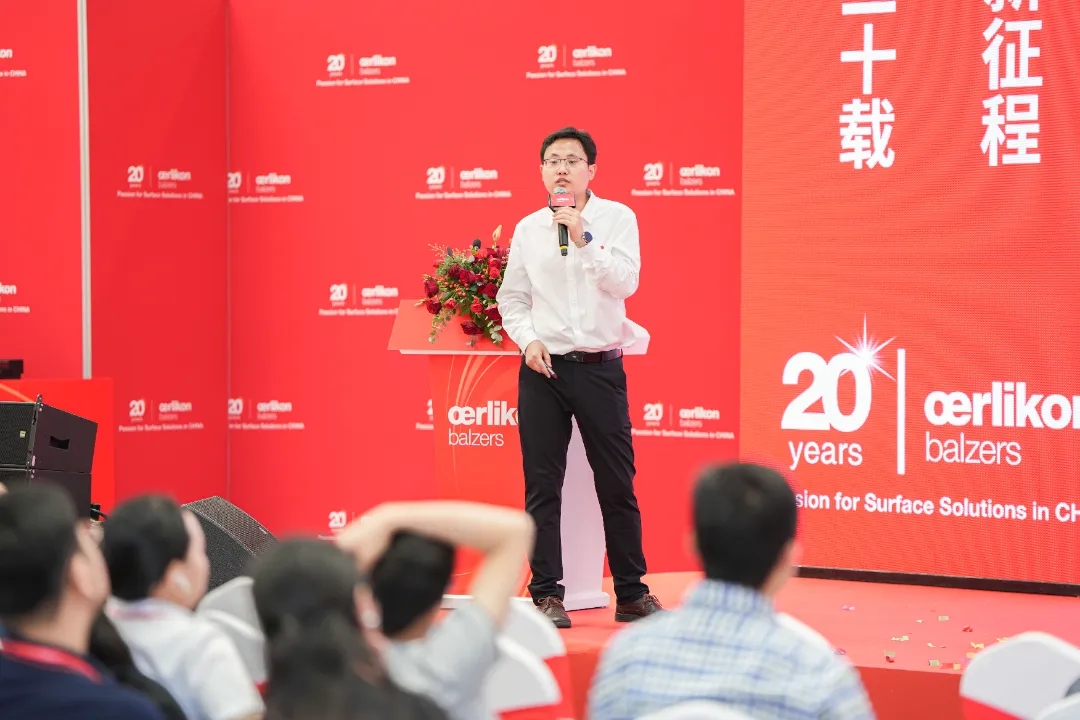 歐瑞康表面處理事業(yè)部中國區(qū)總經(jīng)理劉孝龍先生發(fā)表致辭,帶領(lǐng)大家一同回顧過去二十年的發(fā)展,并展望歐瑞康巴爾查斯更美好的未來。