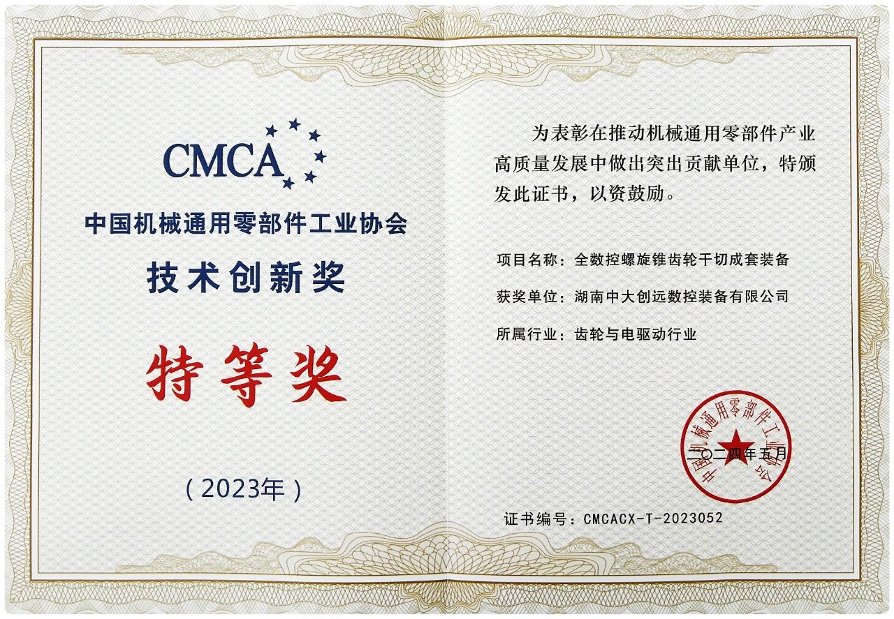 值得一提的是,中大創(chuàng)遠(yuǎn)全數(shù)控螺旋錐齒輪干切成套設(shè)備曾榮獲工信部“制造業(yè)單項冠軍產(chǎn)品”,此次再獲得中國機(jī)械通用零部件工業(yè)協(xié)會“技術(shù)創(chuàng)新獎特等獎”,充分彰顯了中大創(chuàng)遠(yuǎn)的創(chuàng)新能力和技術(shù)實力。