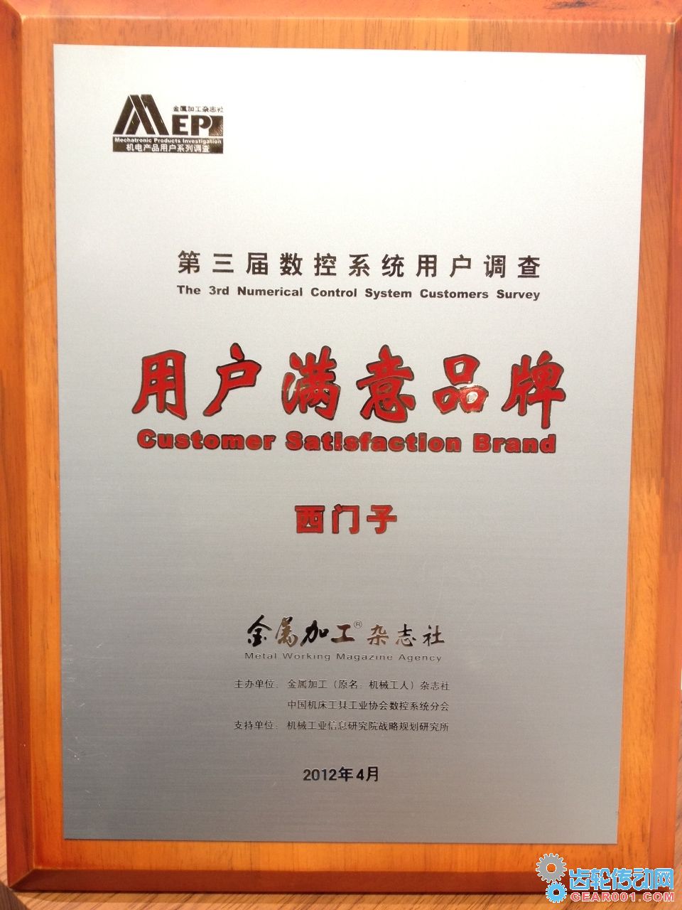 西門子榮獲“第三屆數(shù)控系統(tǒng)用戶調(diào)查”最受用戶滿意的數(shù)控品牌獎