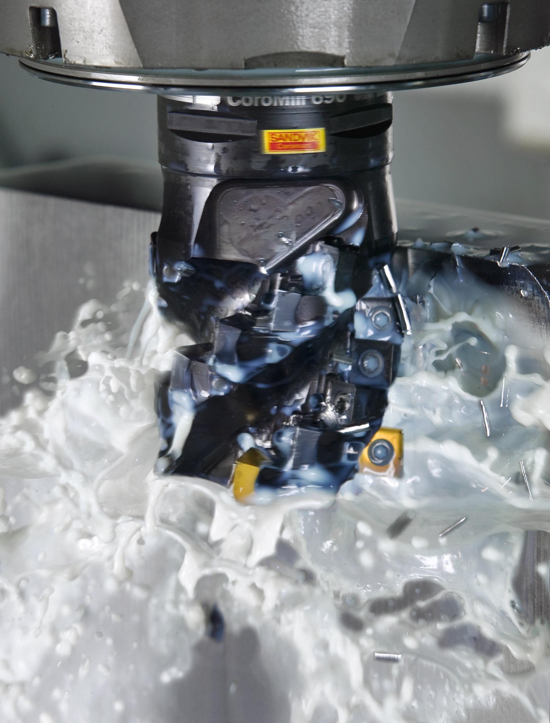 在19世紀八十年代到九十年代,山特維克可樂滿開發了第一代的高壓冷卻系統 Jetbreak。 研究表明,對可加工性和切屑控制方面要求苛刻的加工材料來說,高達100 – 1000 巴的超高壓力、方向精確的冷卻液射流已經成為切削刀具的一部分。冷卻液噴射流在切屑和切削刃之間形成一個液壓楔, 隨著加工區域溫度的降低,切屑和切削刃的接觸長度縮短。 另外一個有趣的效果是冷卻液噴射流會影響切屑的卷曲,從而改善了切屑控制,某些情況下還會導致斷屑。