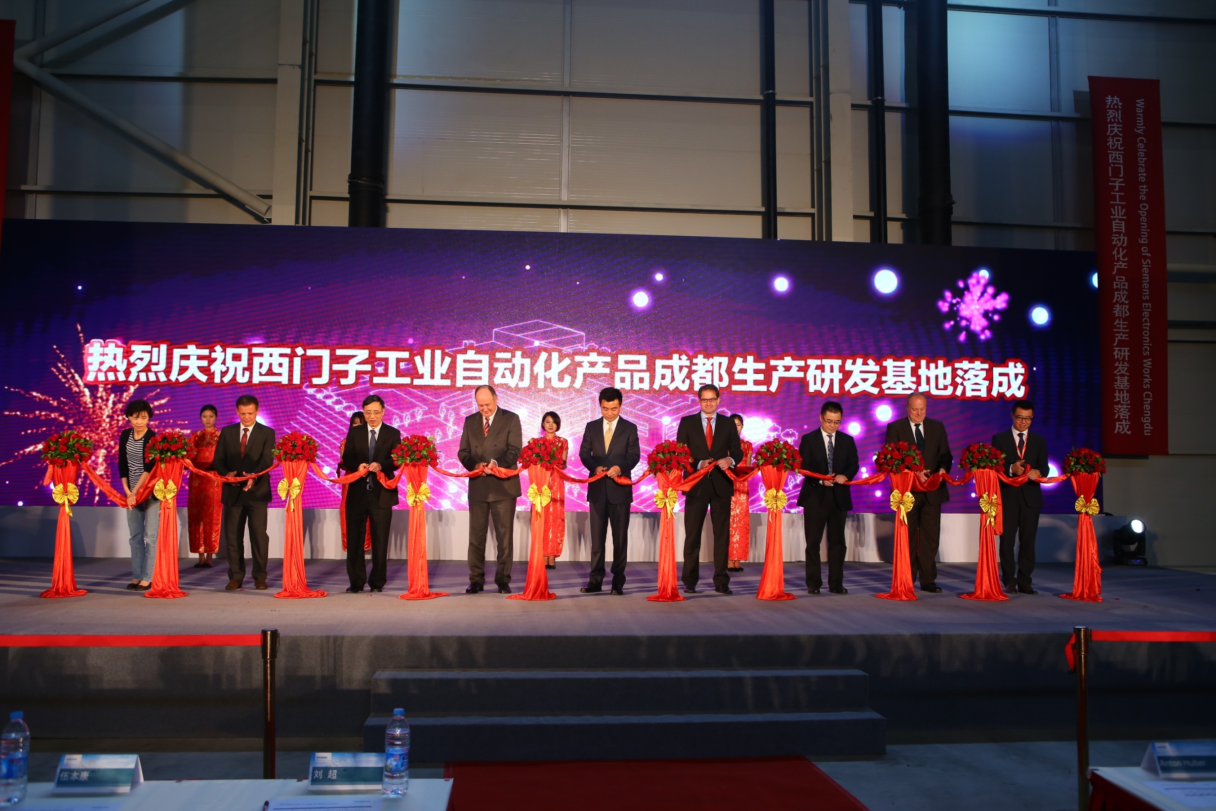 西門子?xùn)|北亞區(qū)工業(yè)領(lǐng)域總裁吳和樂(lè)博士(右四)為西門子工業(yè)自動(dòng)化產(chǎn)品成都生產(chǎn)研發(fā)基地落成剪彩