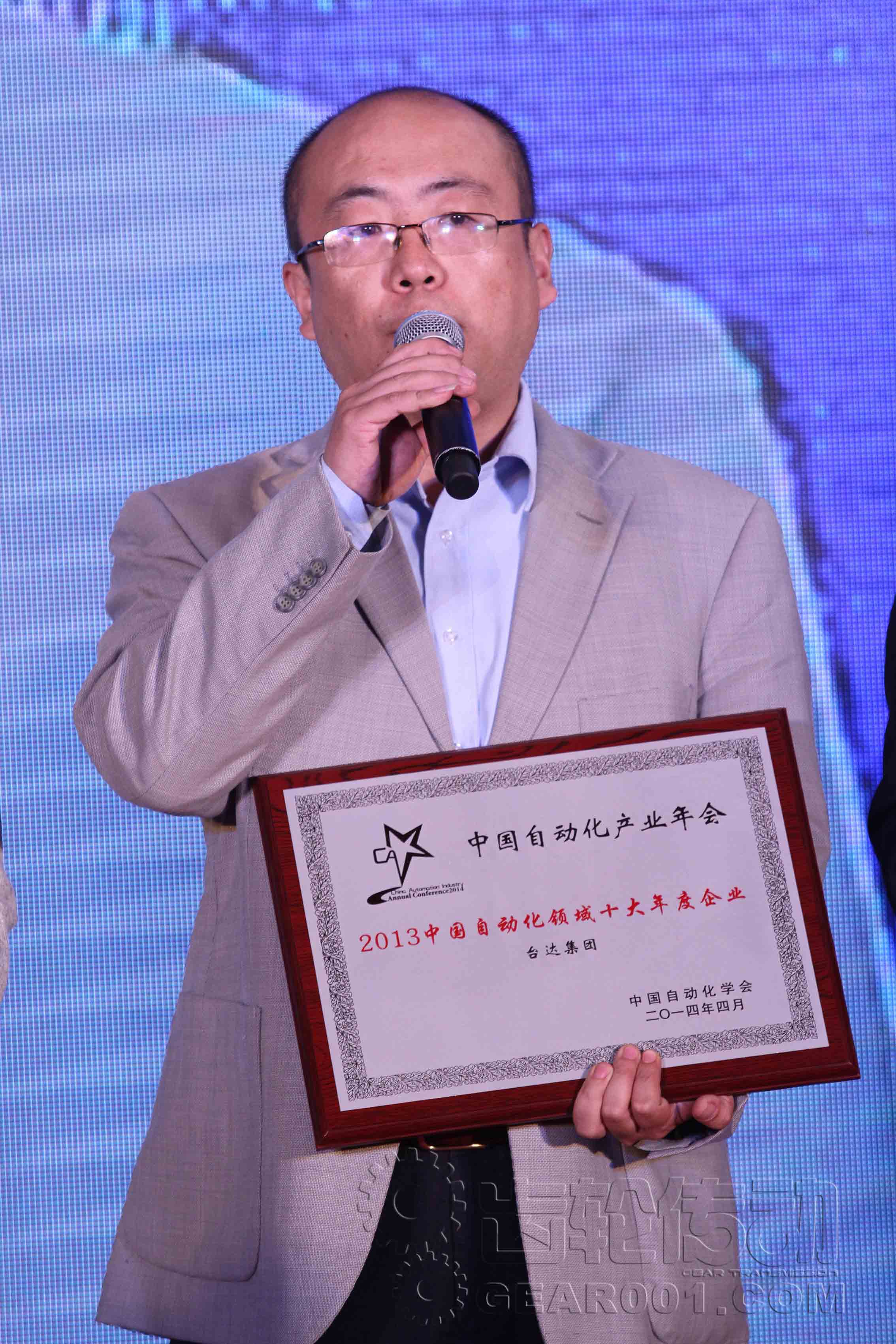圖1:臺達代表李磊領取“2013中國自動化領域十大年度企業”大獎,并發表獲獎感言。
