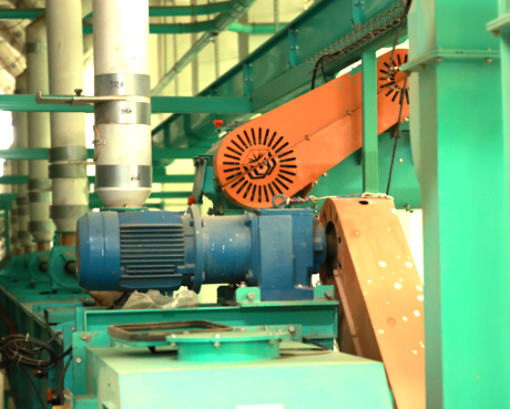 斗提是一種用于垂直或近垂直輸送顆粒狀或粉末狀物料的連續輸送機。在面粉生產過程中,斗提用來將原料從低處提升到高處,或者將成品從生產線運送到儲存區域。在該環節使用了數臺諾德MAXXDRIVE平行軸工業齒輪箱,這些齒輪箱專為高轉矩應用場景設計,能夠輸出高達282,000 Nm的轉矩,并承載最高達6000 kW的功率,充分滿足了斗提機在提升和輸送物料時對強大動力的需求。