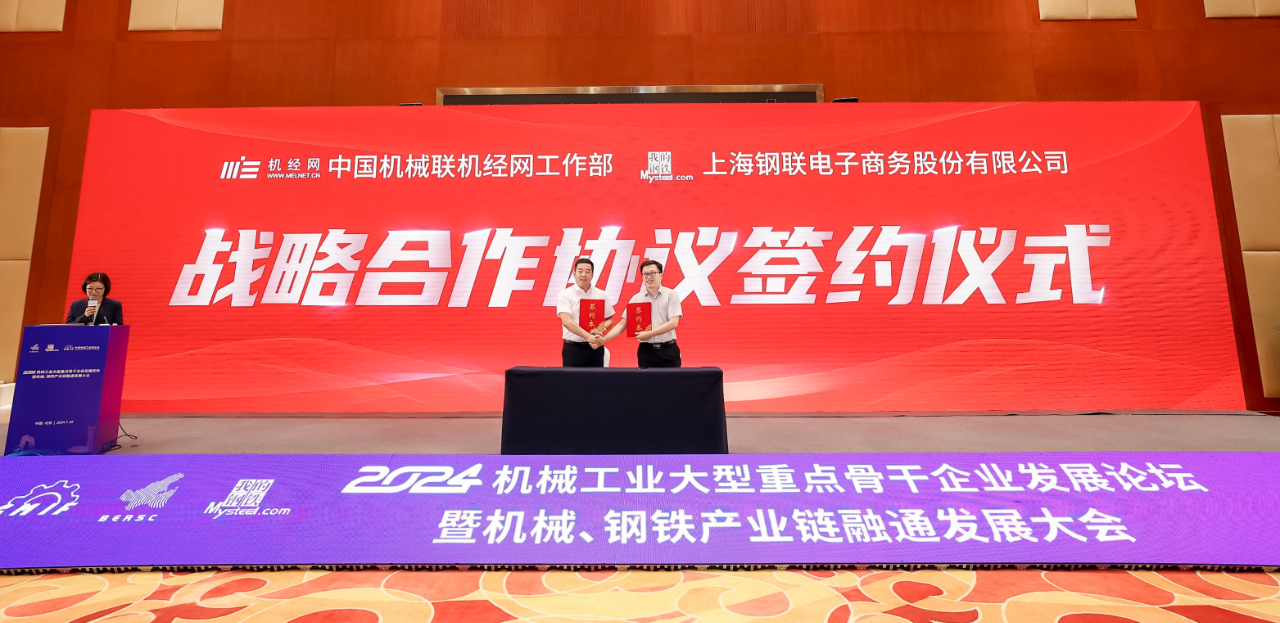大會期間,北京機經網信息技術有限公司與上海鋼聯電子商務股份有限公司簽署了戰略合作協議,雙方將在深化產業合作、促進信息共享、推動數字化轉型及加強市場研究與分析等多個領域展開深度合作,共同推動機械工業與鋼鐵產業鏈的深度融合與發展。