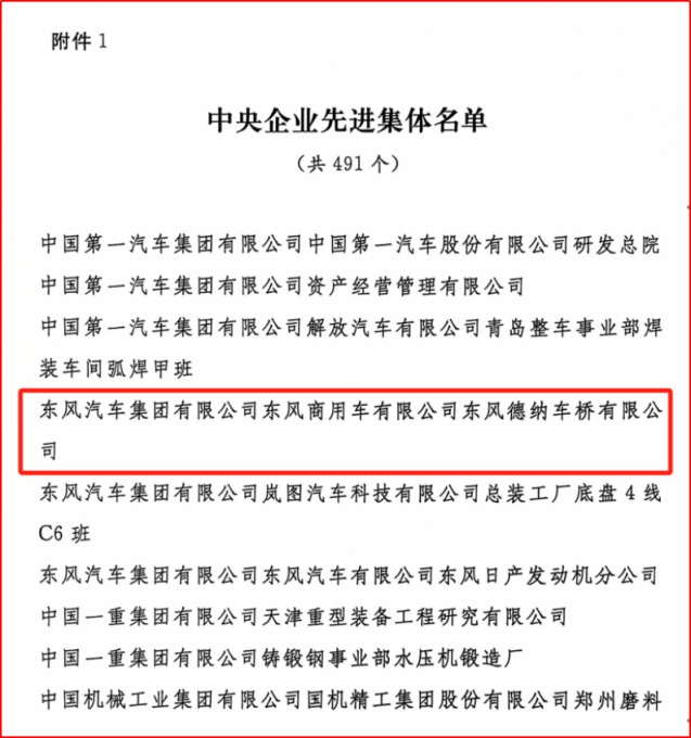 在中華人民共和國成立75周年之際,9月26日,國務院國資委、人力資源社會保障部共同召開中央企業先進集體和勞動模范表彰大會,隆重表彰一大批業績突出、事跡感人的先進典型。東風德納車橋有限公司榜上有名,喜獲“中央企業先進集體”榮譽稱號。
