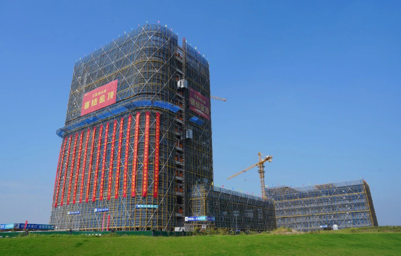 紅幅悅動,金字耀目。10月21日上午,萬里揚大樓結頂儀式在項目現場隆重舉行,萬里揚集團董事長黃河清、集團總裁吳月華、股份總裁顧勇亭等來自集團公司、股份公司的相關領導出席此次活動,共同見證這一重要時刻。儀式由萬里揚集團黨委書記張雷剛主持。