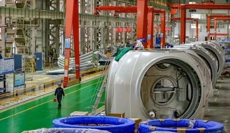 11月8日,中船海裝新疆海裝風(fēng)電設(shè)備有限公司風(fēng)機制造車間,工作人員在裝配風(fēng)電設(shè)備。
