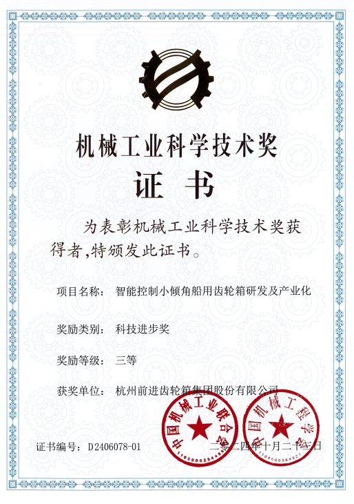 近日,中國機械工業(yè)聯(lián)合會、中國機械工程學會聯(lián)合組織的2024年度“機械工業(yè)科學技術獎”公布了獲獎名單。杭齒集團“大功率多檔位自動換擋變速器關鍵技術研究及應用”和“智能控制小傾角船用齒輪箱研發(fā)及產(chǎn)業(yè)化”兩個項目榮獲科技進步獎三等獎,這是對杭齒集團在機械工業(yè)領域所取得成果的高度肯定。