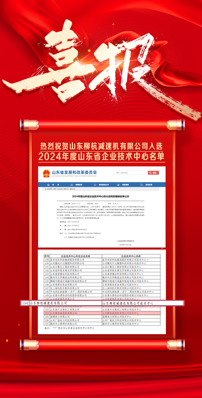近日,山東省發(fā)展和改革委員會公布了2024年度山東省企業(yè)技術(shù)中心擬認定名單,山東柳杭減速機有限公司成功入選該名單。