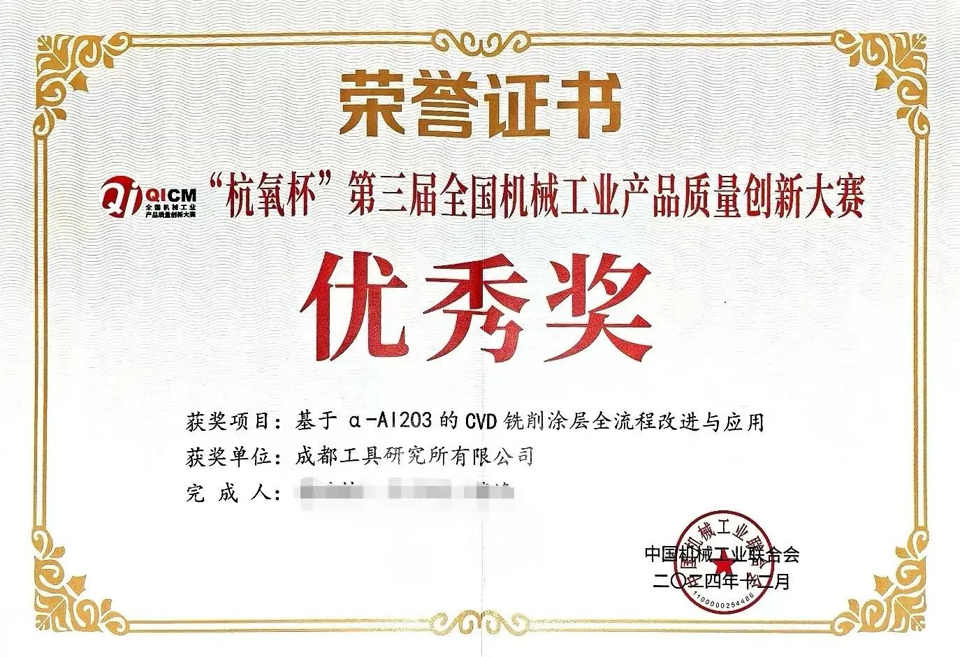 經(jīng)大賽評審委員會組織行業(yè)專家進(jìn)行初賽評審、協(xié)會復(fù)審、決賽評審,成都工具研究所在主題為“夯實質(zhì)量根基 鑄就工研品質(zhì)”的質(zhì)量月活動期間提交的參賽項目,最終獲得了優(yōu)異成績:數(shù)控刀具事業(yè)部的“提高焊管刀具產(chǎn)品性能及應(yīng)用推廣”、特種刀具事業(yè)部的“高合金石油管螺紋加工專用刀具研發(fā)與應(yīng)用”兩個項目雙雙榮膺銀獎,涂層技術(shù)事業(yè)部的“基于α-Al2O3的CVD銑削涂層全流程改進(jìn)與應(yīng)用”項目獲得優(yōu)秀獎。以上殊榮不僅是對成都工具研究所過去產(chǎn)品質(zhì)量提升和技術(shù)創(chuàng)新工作的認(rèn)可,更是對未來持續(xù)努力的褒獎。