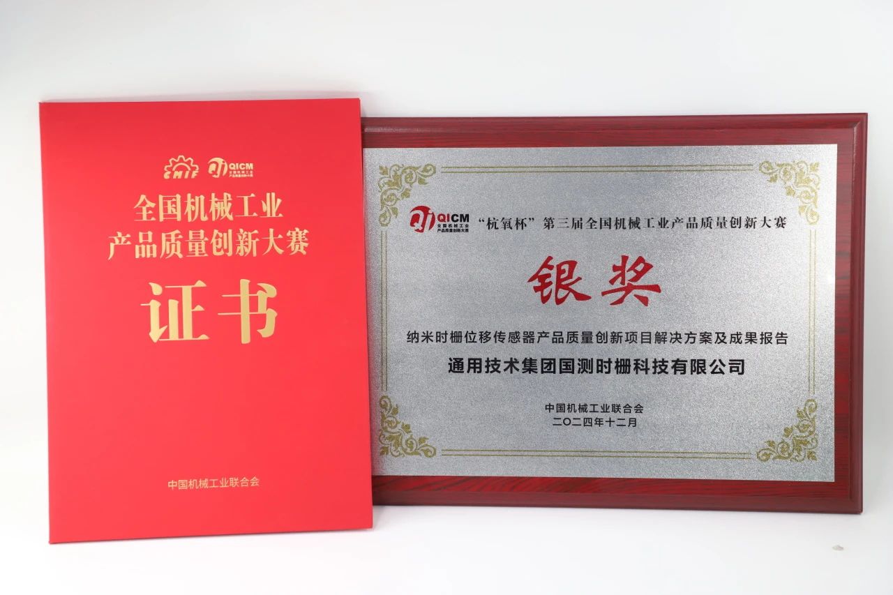 近日,中國機械工業聯合會組織開展“杭氧杯”第三屆全國機械工業產品質量創新大賽頒獎活動,活動以“守正創新 質勝未來”為主題,旨在通過該質量創新平臺推選一批自主創新優質產品和優秀企業。其中,國測時柵組織申報的“納米時柵位移傳感器產品質量創新項目解決方案及成果報告”獲評銀獎項目。