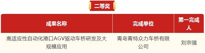 近日,山東省總工會公布了2024年度山東省職工創(chuàng)新創(chuàng)效競賽省級決賽擬授獎成果名單,經(jīng)過層層選拔,由青特集團技術中心劉宗強作為第一完成人、公司自主正向開發(fā)的產(chǎn)品項目“高適應性自動化港口AGV驅動車橋研發(fā)及大規(guī)模應用”榮獲二等獎。為山東省乃至全國港口自動化碼頭的綠色低碳建設樹立了典范,為推動港口行業(yè)向智能化、環(huán)保型發(fā)展,構建智慧物流體系貢獻了青特力量。